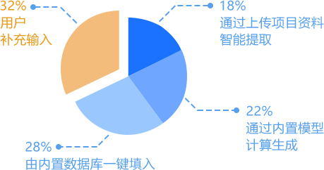 18%数据可通过上传可研、工程设计等项目相关资料,智能提取写入项目数据库;