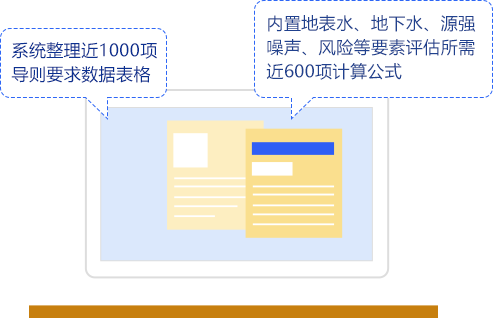 系统以环评导则以准绳,整理了导则要求的近1000项数据表格,内置地表水、地下水、源强、噪声、风险等要素评估所需的近600项计算工具,一站式辅助环评编制。